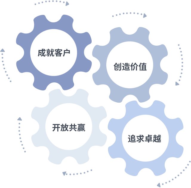 成就客户是一切决策的出发点,创造价值是衡量所有工作的标准,追求卓越是yl6809永利做事做人的态度,开放共赢是yl6809永利的格局也是最终的结果。价值观的齿轮环环相扣,推动着组织里的每个人不断向前。